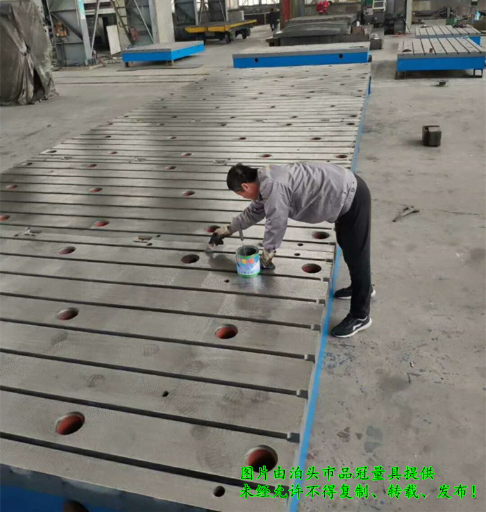 拼接裝配平臺適用于大于4000X8000規格的大型鑄鐵平板,因為單塊鑄鐵平板面積過大,不容易運輸或安裝的大型鑄鐵平板。采用小規格鑄鐵平板拼接的方式來完成。這種拼接的方式對拼接平臺使用絲毫沒有影響。